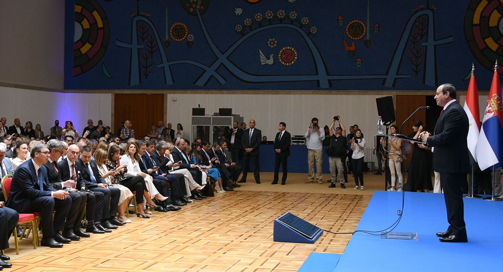 وصرح السفير بسام راضي المتحدث الرسمي باسم رئاسة الجمهورية بأن الرئيس أعرب عن ترحيبه بهذا الحدث الذى يجسد روح التعاون المتميز بين مصر وصربيا، مؤكدًا حرص مصر خلال الفترة القادمة على تطوير علاقات التعاون الاقتصادي والتجاري مع مجتمع رجال الأعمال والشركات الصربية وتنمية الاستثمارات المشتركة للمساهمة في دعم مسيرة التنمية الاقتصادية في مصر، وذلك في إطار من العمل المشترك لتعظيم المصالح المتبادلة والاستغلال الأمثل للفرص المتاحة، وخاصةً مع توافر العديد من المجالات والفرص الاستثمارية الواعدة في مصر، لاسيما في قطاعات السياحة والصناعات الدوائية والاتصالات وتكنولوجيا المعلومات والبنية التحتية والإسكان العقارى والإدارى، فضلًا عن تعزيز التبادل التجاري بين البلدين في المنتجات الزراعية.