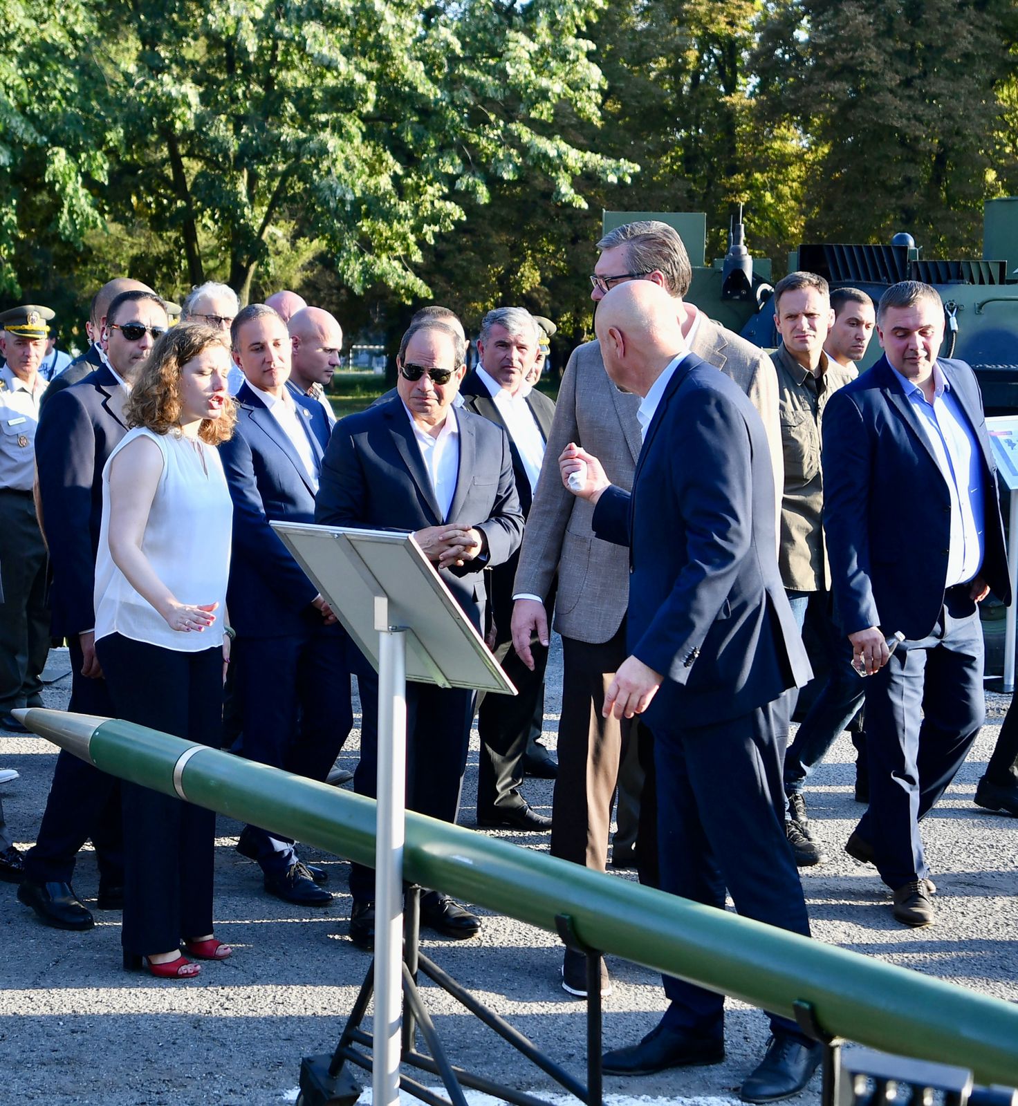 حضر الرئيس عبد الفتاح السيسي برفقة الرئيس الصربي ألكسندر فوتشيتش عرضا لأسلحة القوات المسلحة الصربية والمعدات العسكرية الدفاعية من الصناعة المحلية، وذلك في ساحة التدريب في أرض الحراسة العسكري في العاصمة بلجراد.