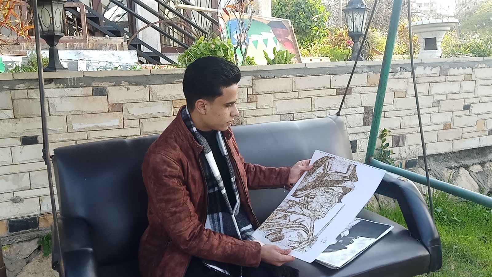 وأضاف طالب كلية اللغة العربية، أنه رسم لوحات مختلفة من النار سواء أكانت لطبيعة أو أشخاص، كما رسم ببري الأقلام والشاي والعسل لوحتين لكوكب الشرق أم كلثوم، إضافة إلى رسومات أخرى بالحبوب والكاراتيه والقهوة لشخصيات فنية مختلفة وغير فنية، كما رسم بالرصاص في بدايته للشيخ الشعراوي والفنان أحمد حلمي وزوجته الفنانة مني زكي والنجم بهاء سلطان وغيرهم.
