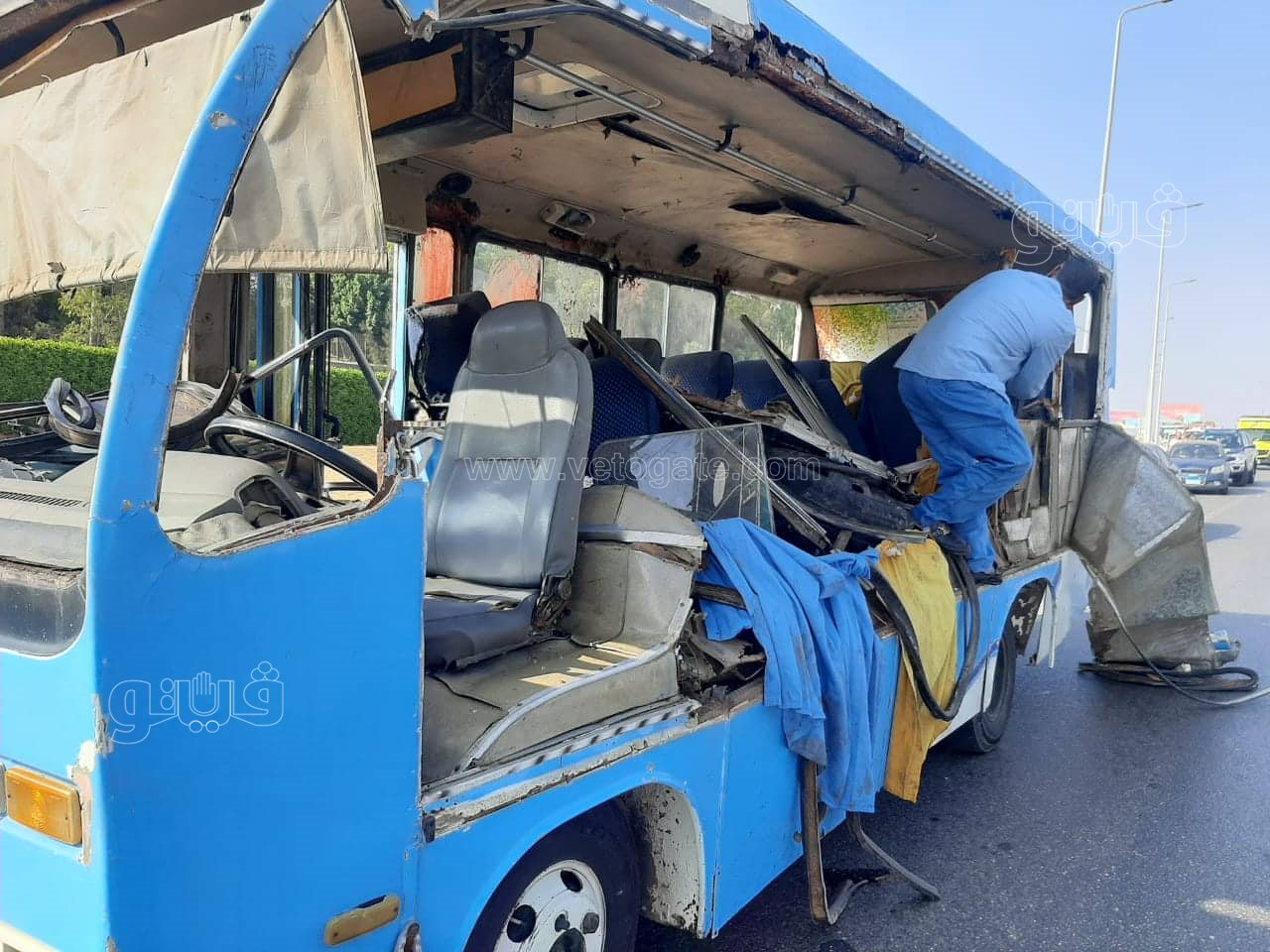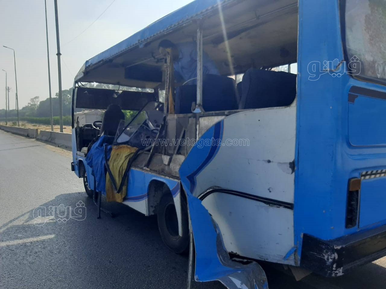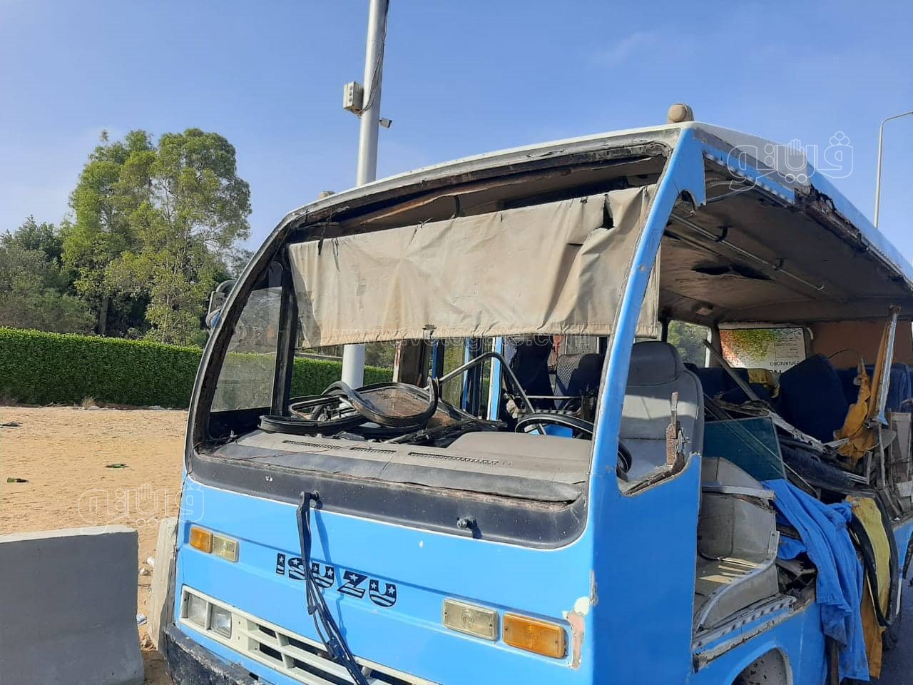 مصرع وإصابة 24 عاملا.. الصور الأولى لحادث تصادم بطريق السويس الصحراوي