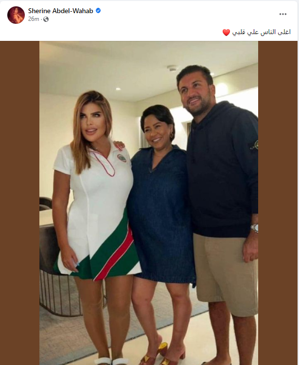 وعلقت شيرين على الصورة قائلة: "اغلى الناس علي قلبي".