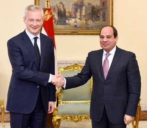 التقى الرئيس عبد الفتاح السيسي في باريس مع السيد برونو لومير، وزير الاقتصاد والمالية الفرنسي".
