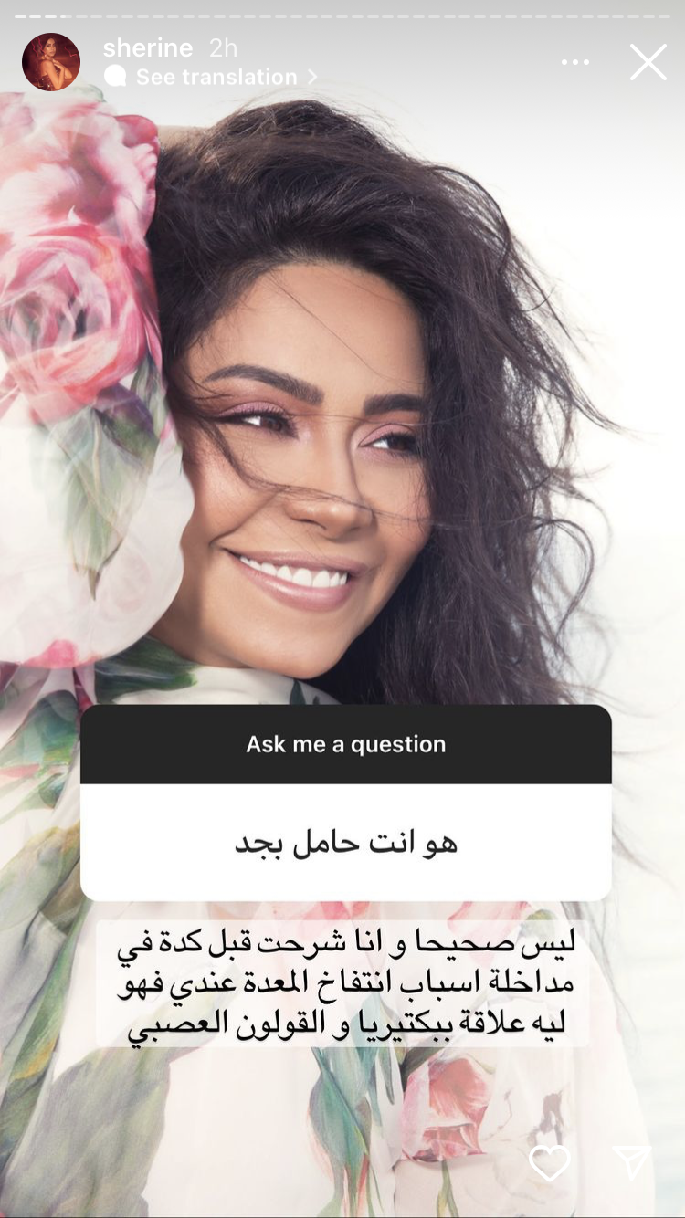 في الحقيقة شيرين عبد الوهاب ليست "حامل" ولكنها تعاني من أزمة صحية تسببت في زيادة وزنها بشكل كبير، حيث حسمت الجدل منذ فترة قصيرة ونفت حملها وكتبت في وقت سابق عبر خاصة "الاستوري": “ليس صحيحا، وأنا شرحت قبل كده في مداخلة أسباب انتفاخ المعدة عندي فهو ليه علاقة ببكتريا القولون العصبي”.