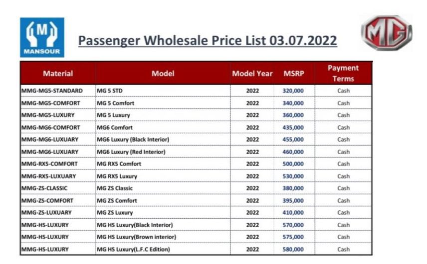 ويستعرض التقرير التالي أسعار عربيات MG داخل السوق المحلي وهي كالتالي: