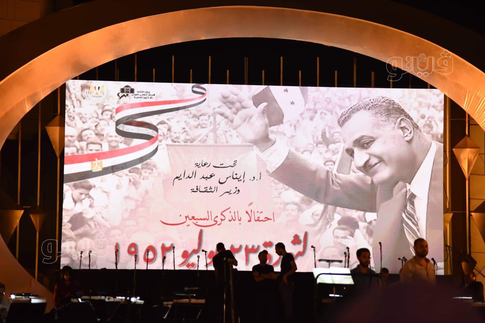 في ليلة وطنية رائعة، احتفلت دار الأوبرا المصرية برئاسة الدكتور مجدي صابر، بالذكرى الـ70 لثورة 23 يوليو المجيدة، التي تأتي ضمن احتفالات وزارة الثقافة، وأحياها نجوم فرق الموسيقى العربية بمشاركة كورال أطفال الأوبرا تدريب سهير حسين وقيادة المايسترو صلاح غباشي، وذلك مساء اليوم السبت 23 يوليو على مسرح النافورة.