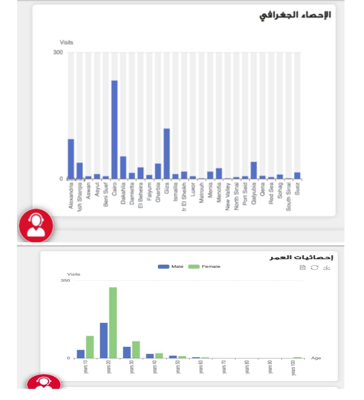 وأظهرت الإحصائيات أيضا أن أكثر الفئات العمرية المستخدمة للموقع هى فئة المراهقين والشباب، وأن المستخدمين للموقع من جميع محافظات الجمهورية، وأغلب المستخدمين من محافظة القاهرة.
