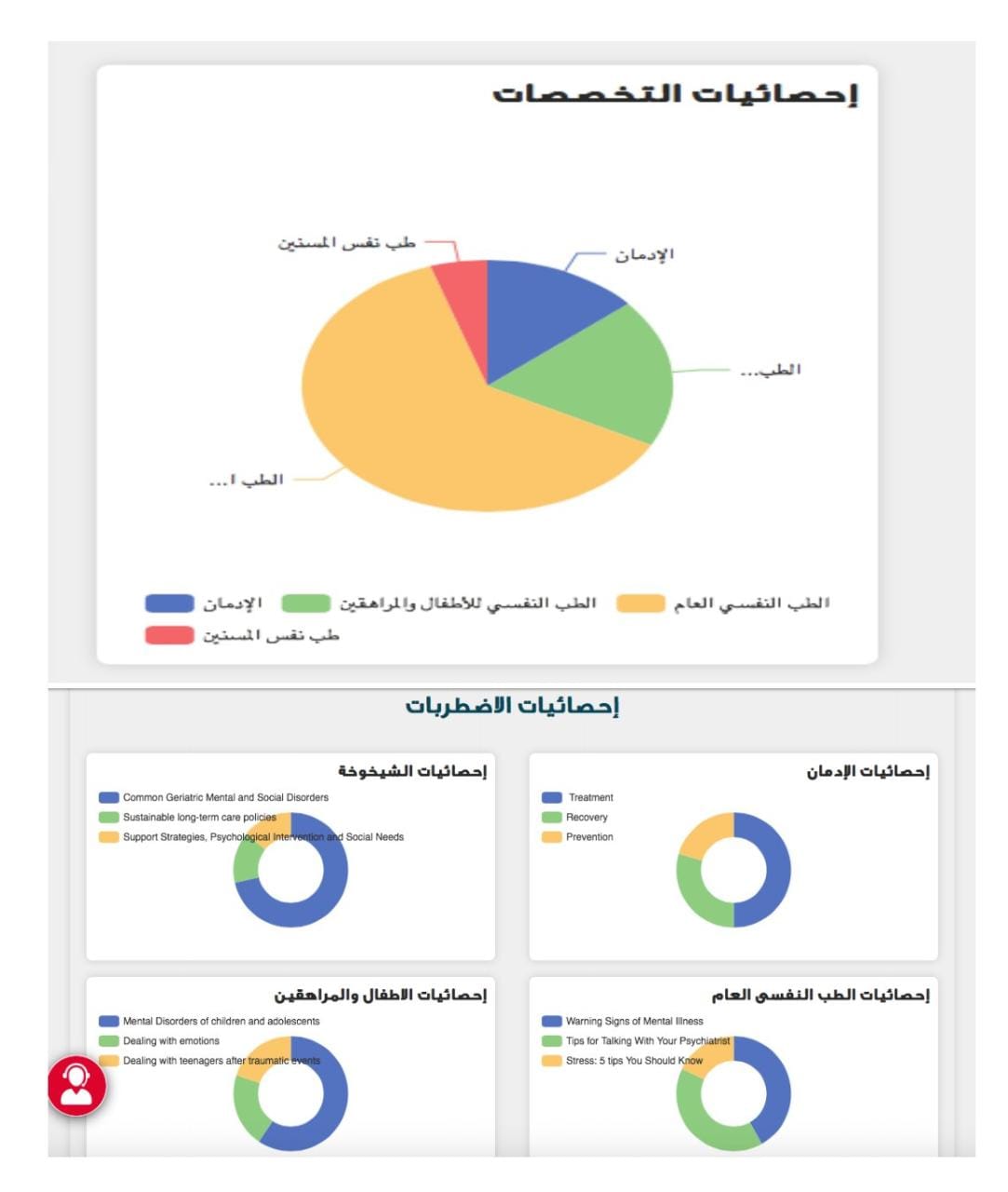 وأوضحت النتائج الإحصائية كذلك أن الطب النفسي العام بكافة أمراضه هو أكثر ما يتصفحه المستخدمون للموقع، يليه طب نفس الأطفال والمراهقين، ويليه الإدمان، ثم طب نفس المسنين.