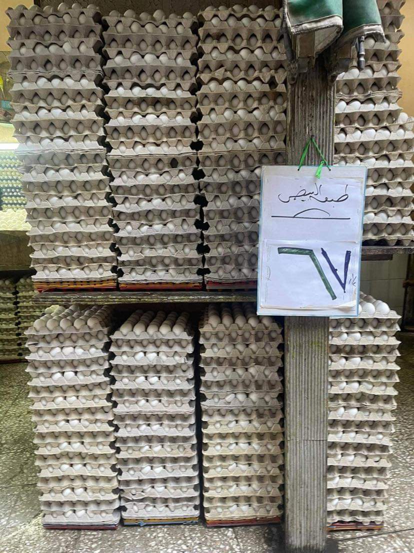 وبلغ سعر البيض الأبيض ٢.٢٥ جنيه للبيضة.