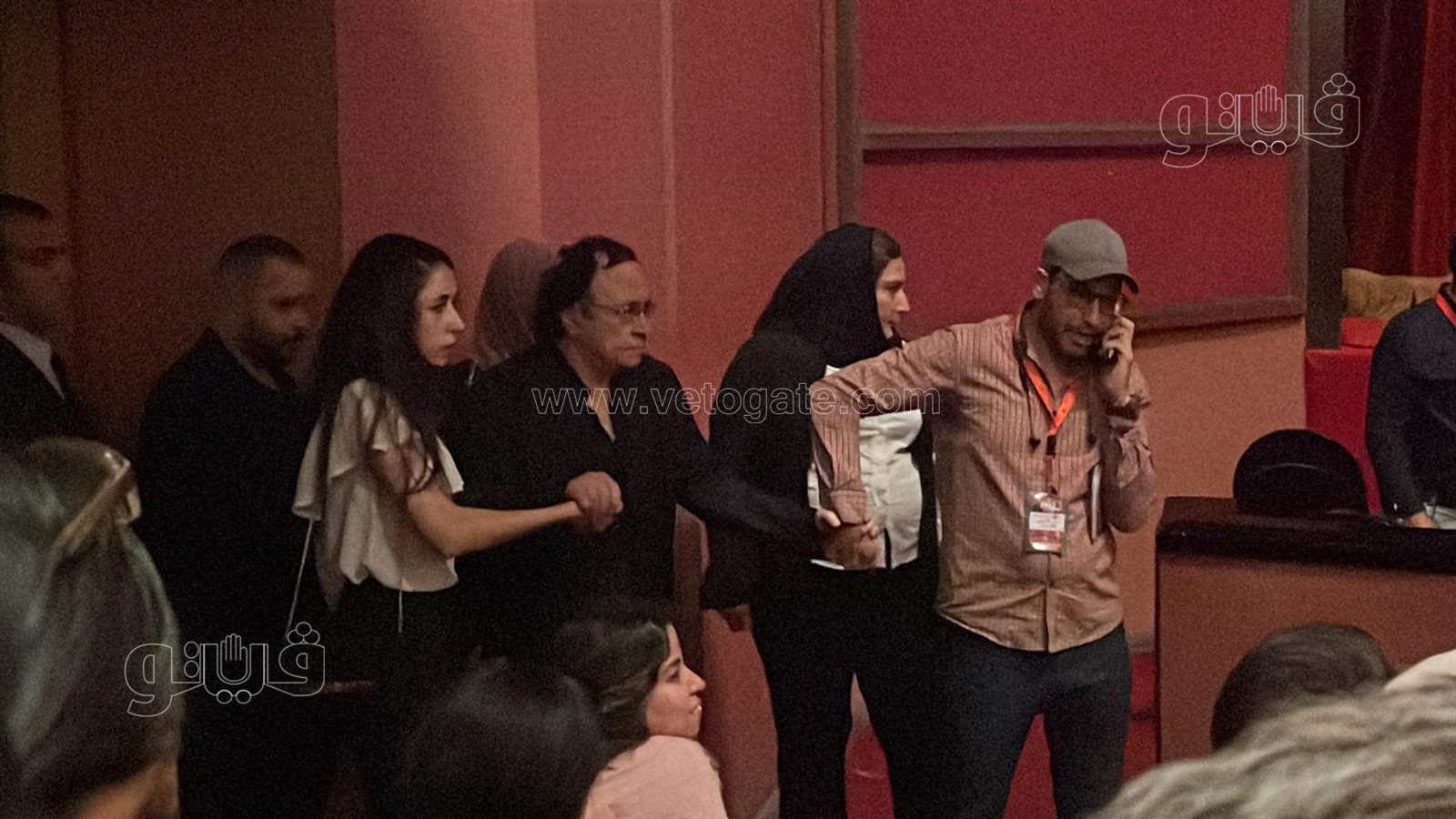ودخل المخرج مراد منير المسرح مستندا على ابنته “ليلى” من أجل الوصول للمكان المخصص له داخل المسرح.