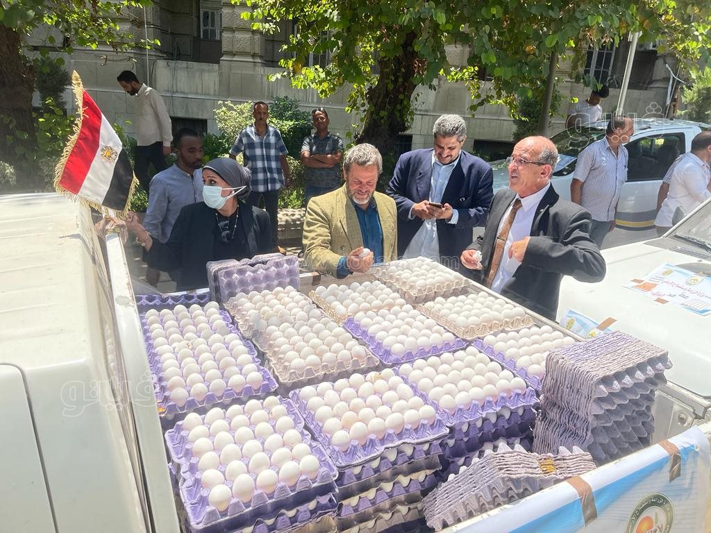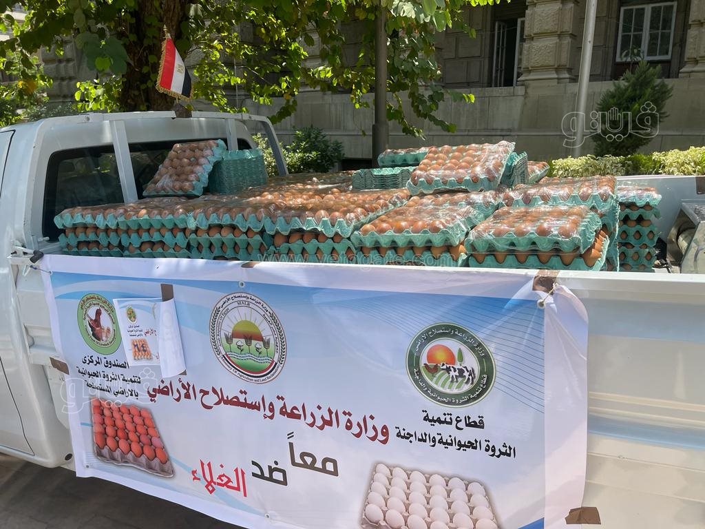 وطرحت الوزارة صباح اليوم الأحد، عدد من السيارات لبيع بيض المائدة بسعر الطبق: ٦٢ جنيه للابيض و٦٤ جنيه الاحمر، امام ديوان الوزراة بالدقى للبيع للمواطنين، فضلا عن منافذ متنقلة للبيع بنفس الأسعار في محافظات: كفرالشيخ، أسيوط، الإسكندرية، البحيرة، الدقهلية، والمنوفية، فضلا عن طرح كميات كبيرة ايضا بجميع منافذها الثابتة بالمحافظات المختلفة، من إنتاج مشروعات الوزارة ومزارعها ومحطاتها المختلفة، ومن خلال التنسيق مع الاتحاد العام لمنتجي الدواجن.