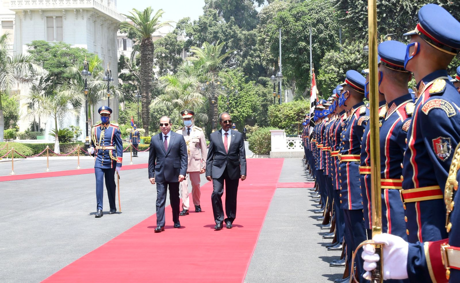 استقبل الرئيس عبد الفتاح السيسي اليوم بقصر الاتحادية حسن شيخ محمود، رئيس جمهورية الصومال الفيدرالية، حيث أقيمت مراسم الاستقبال الرسمي وتم عزف السلامين الوطنيين واستعراض حرس الشرف".