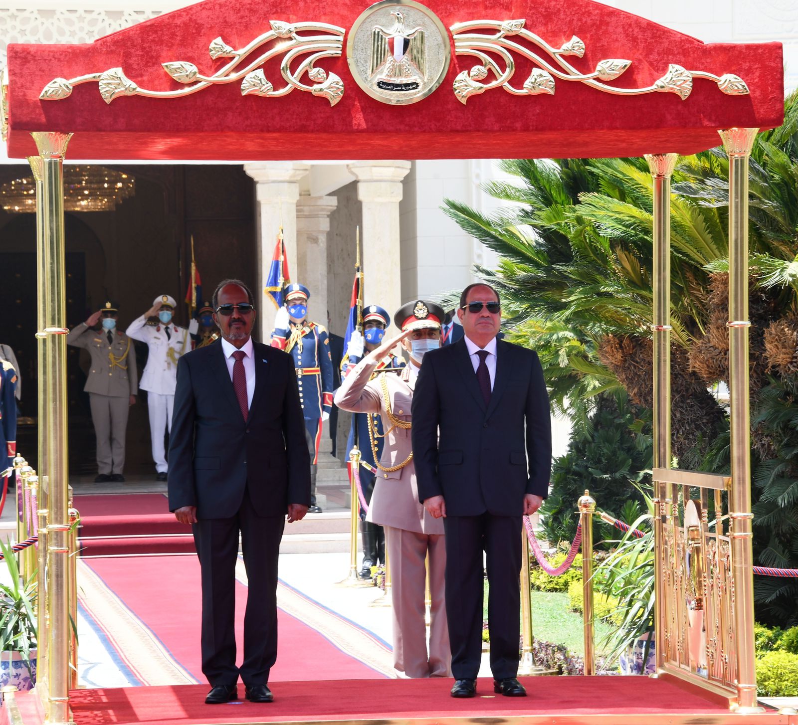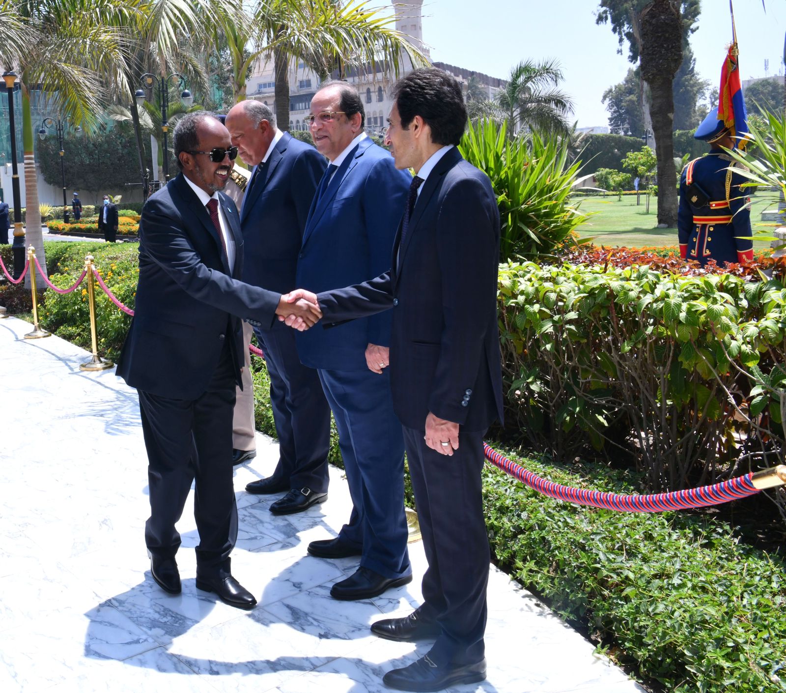 من جانبه؛ أعرب الرئيس الصومالي عن خالص تقديره لحفاوة الاستقبال، مؤكدًا الحرص على تطوير التعاون مع مصر على مختلف المستويات في إطار مرحلة إعادة بناء المؤسسات الوطنية الصومالية، وذلك في ظل ما يجمع البلدين الشقيقين من علاقات تاريخية، والمكانة المتميزة التي تتمتع بها مصر في وجدان الشعب الصومالي، أخذًا في الاعتبار دور مصر التاريخي في مساندة الصومال وما تقدمه من دعم في مختلف المجالات، خاصةً في المجال التعليمي، ونشر ثقافة الإسلام الوسطي والفكر المعتدل، وكذا تنمية الكوادر البشرية الصومالية، بالإضافة إلى الثقل المحوري لمصر على صعيد صون السلم والأمن في المنطقتين العربية والأفريقية.