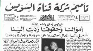 صدرت المانشتات في الصحف المصرية تقول " أموالنا ردت إلينا "، أممنا القنال، عادت إلينا، وصدرت الجمهورية التي كان يرأس تحريرها أنور السادات بمانشيت يقول قادر وفاجر وعملها، عبد الناصر يعلن تأميم شركة القنال وغيرها.