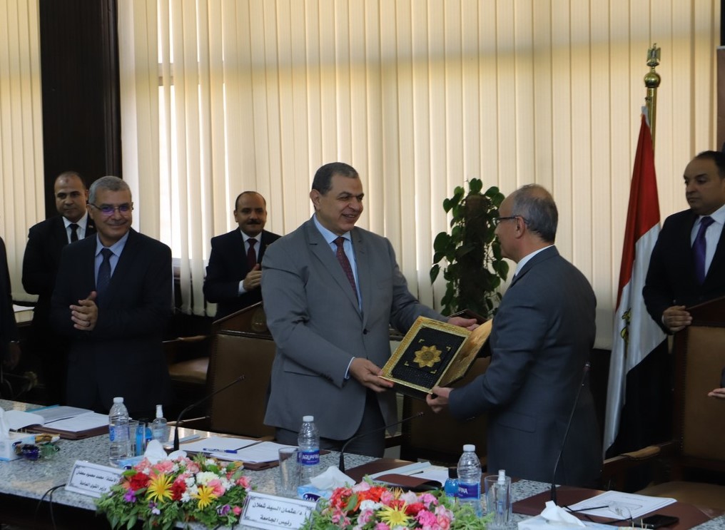 ومن جانبه أعرب الدكتور عثمان شعلان رئيس الجامعة عن ترحيبه بالوزير لحرصه على حضور هذا المجلس مقدما له خالص الشكر والتقدير والامتنان على مقترحات البناءة التى أثرت أعمال الجامعة بالعديد من الأعمال التي تخدم الطلاب والمواطنين.