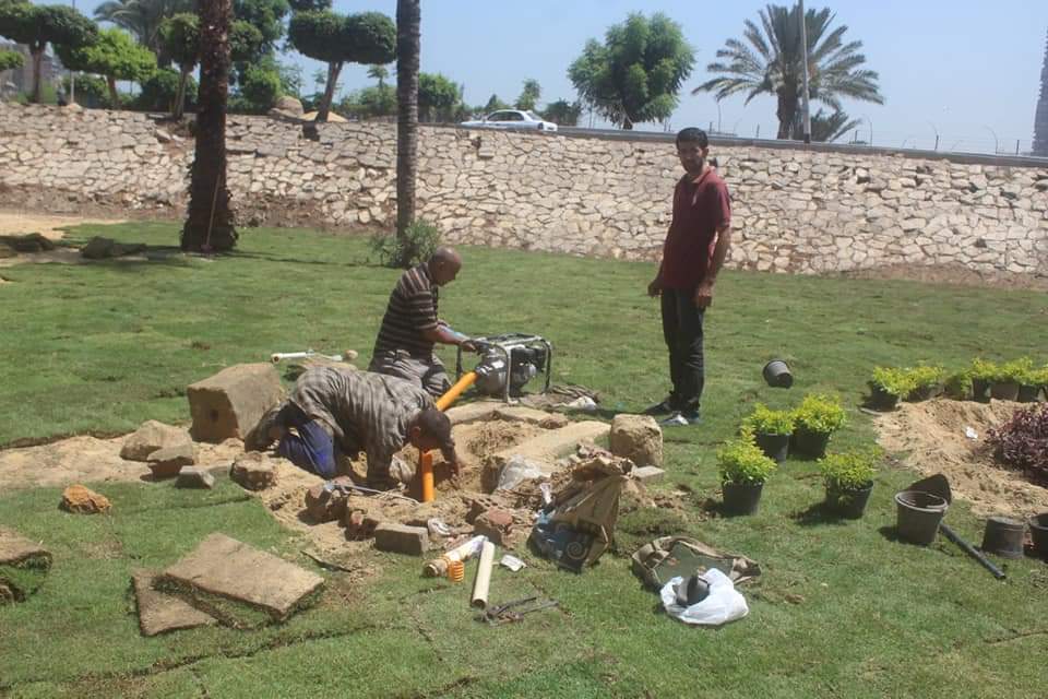 بالإضافة إلى فرق الحدائق شملت (أعمال زراعة النباتات والزهور، وأعمال فرد النجيلة سابقة التجهيز،، وأعمال تركيب موتور مياه لأعمال ري المسطحات الخضراء) بحديقة نفق كوبري عباس بنطاق حي جنوب الجيزة.