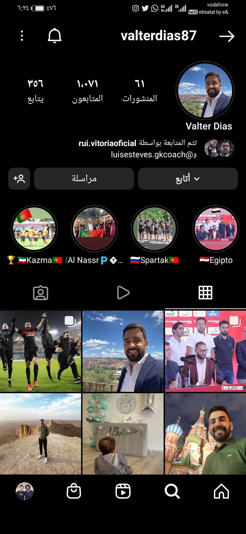 تابع والتر دياز محلل الأداء ومخطط الأحمال بجهاز روي فيتوريا المدير الفني لمنتخب مصر أحد الصفحات المختصة باللاعبين المصريين المحترفين في الخارج.