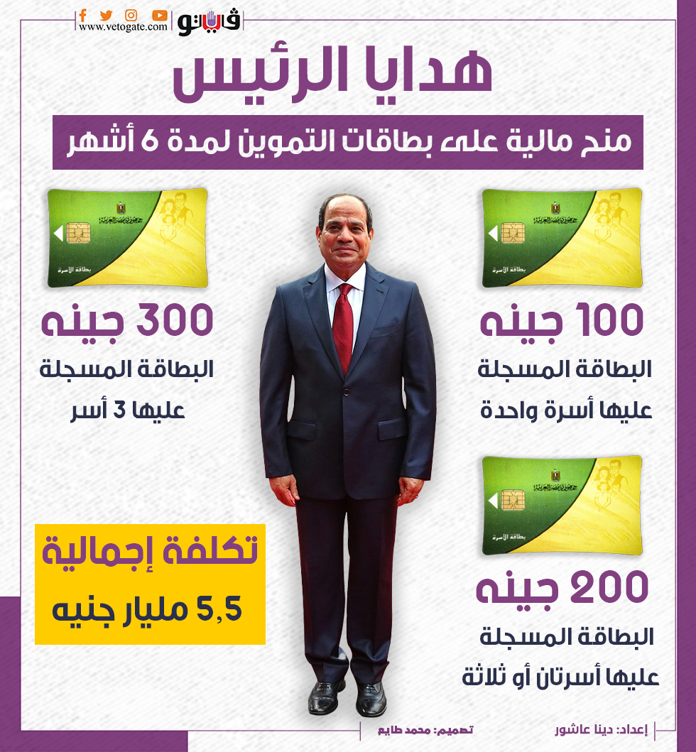 هدايا الرئيس.. منح مالية على بطاقات التموين لمدة 6 أشهر | إنفوجراف الخميس 28/يوليو/2022 - 02:26 ص 7/28/2022 2:26:25 AM هدايا الرئيس.. منح مالية على بطاقات التموين لمدة 6 أشهر دينا عاشور شارك طباعة 18 حجم الخط شارك طباعة قرارات الرئيس السيسي اليوم قرارات الرئيس الجديدة زيادة دعم التموين وزير التموين منح بطاقات التموين مجلس الوزراء