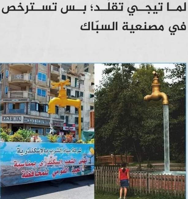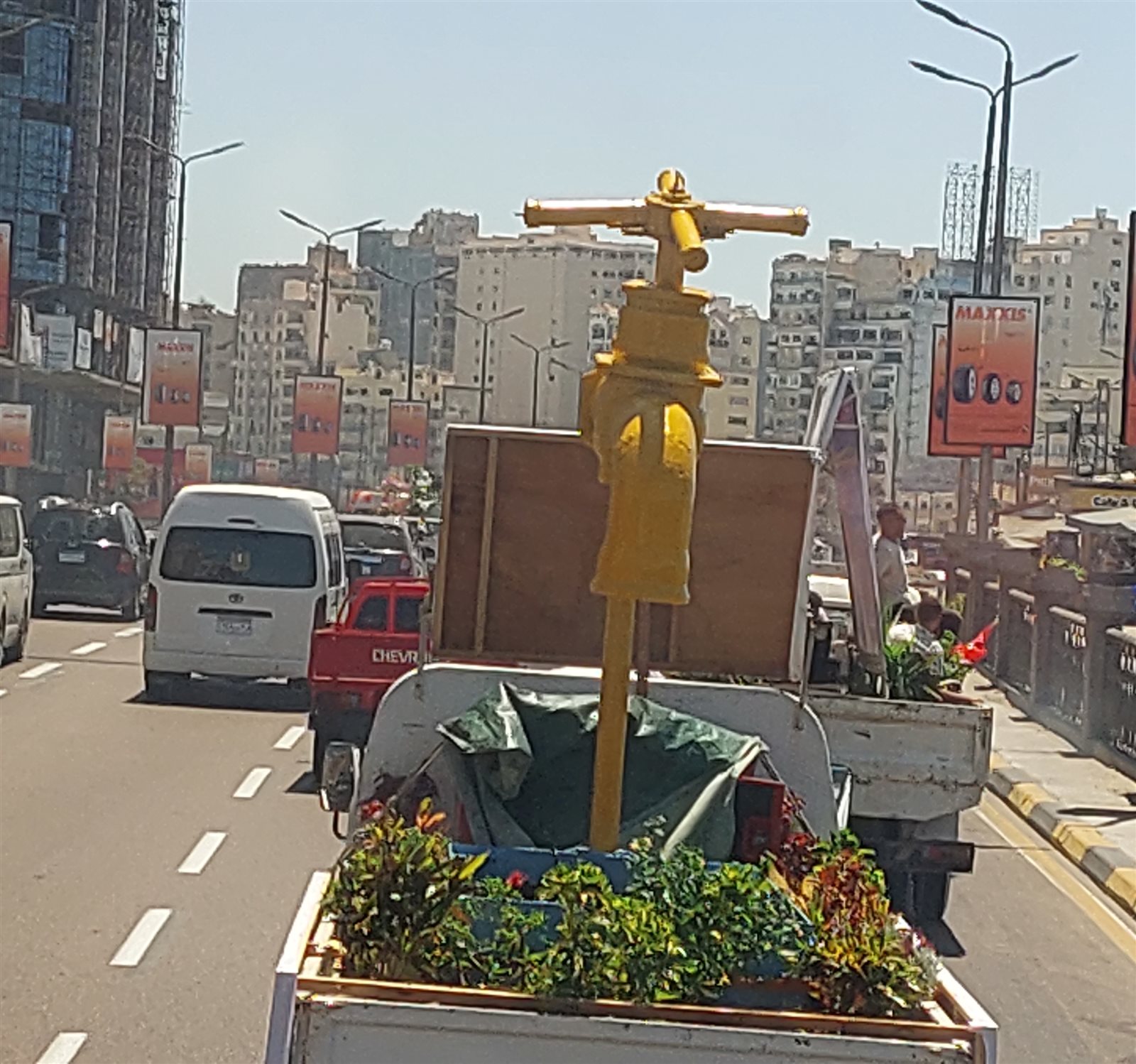 شهد موقع التواصل الاجتماعي فيس بوك، سخرية وانتقادا لاذعا بسبب نافورة على شكل صنبور مياه ضخم لشركة مياه الإسكندرية وضع على سيارة أثناء مشاركة الشركة الحكومية في مسيرة الزهور احتفالا بالعيد القومي لمحافظة الإسكندرية.