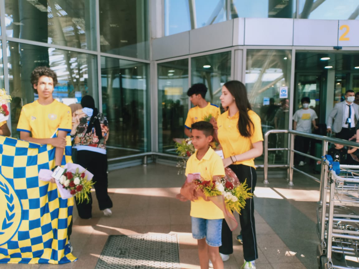 وحرص عدد من الأهالي والاقارب علي استقبال البعثة بالورود فور وصولها إلى مطار القاهرة.