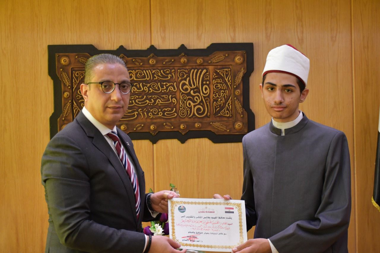 محافظ الفيوم يكرم أول الثانوية الأزهرية | صور