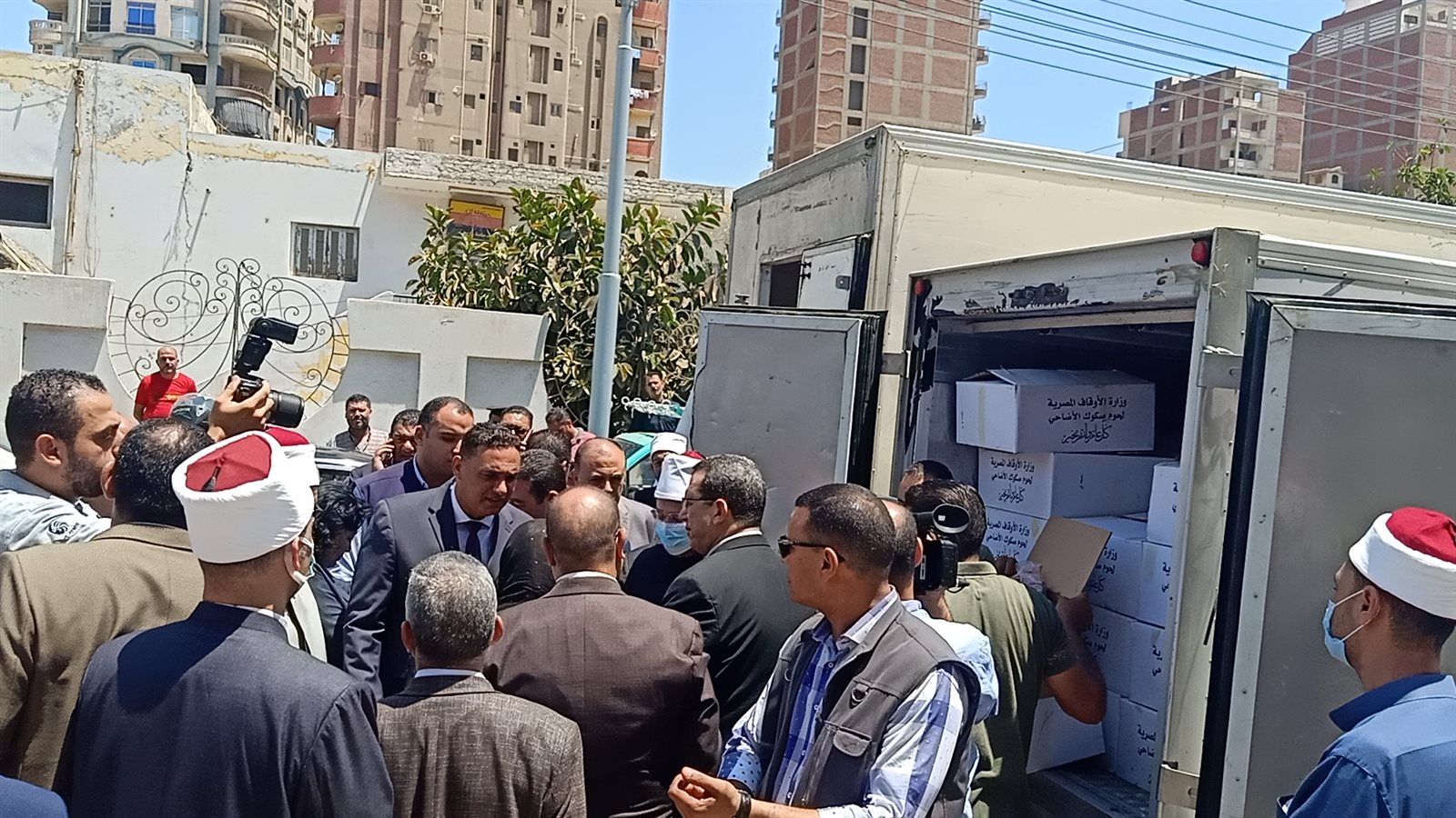 شهد الدكتور الدكتور محمد مختار جمعة وزير الأوقاف والدكتور أيمن مختار محافظ الدقهلية استلام 4 أطنان لحوم صكوك طعام توزيع صكوك الطعام على الأسر الأولى بالرعاية على مستوى المحافظة وتقديم كافة أوجه الدعم لهم.
