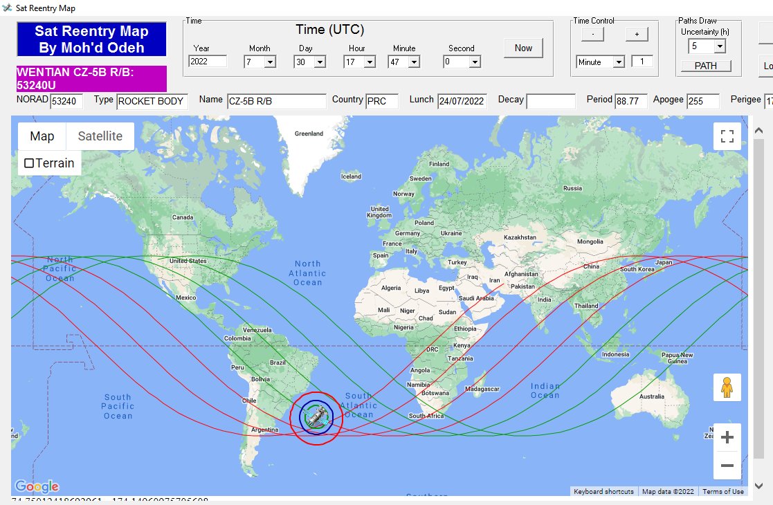 وأكد مركز الفلك الدولي أن الصاروخ الفضائي الصيني "لونغ مارش 5 ب" أُطلق يوم 24 يوليو 2022، حاملا معه إحدى القطع الرئيسية المسماة (Wentian) وذلك للالتحام مع محطة الفضاء الصينية (Tiangong). ويتكون الصاروخ هذا من أربعة قطع دفع نفاث كبيرة ومن مرحلة رئيسية واحدة فقط. وتدور المرحلة الرئيسية حاليا حول الأرض مرة كل 89 دقيقة