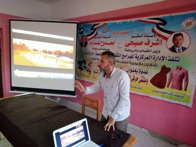 أضاف وكيل وزارة الشباب والرياضة أنه على هامش الندوة تم تنفيذ ملتقي حرفي بمشاركة 10 فتيات لتعليمهن وتدريبهن على فن التفصيل بالباترون وهو عبارة عن قياسات لأبعاد الجسم جميعها، بحيث تكون هذه القياسات دقيقة جدًا عند أخذها لسهولة تطبيقها على القماش، وذلك بهدف نشر ثقافة العمل الحر والتدريب على المهن الحرفية وتمكين الفتاة اقتصاديًا وتوفير لها حياة كريمة.