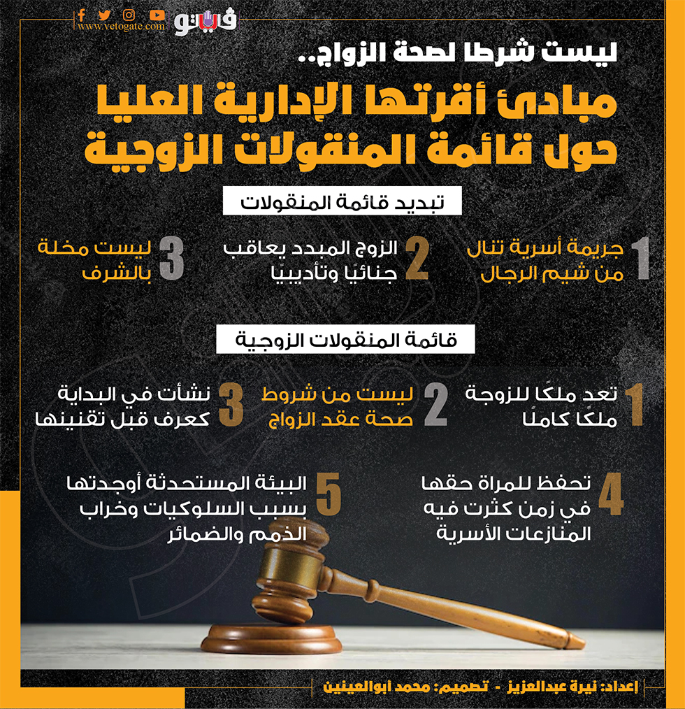 ليست شرطا لصحة الزواج.. مبادئ أقرتها الإدارية العليا حول قائمة المنقولات الزوجية | انفوجراف الأحد 31/يوليو/2022 - 02:47 م 7/31/2022 2:47:31 PM محكمة نيرة عبد العزيز شارك طباعة 18 حجم الخط شارك طباعة نقولات منزل الزوجة قائمة المنقولات الزوجية المحكمة الإدارية العليا