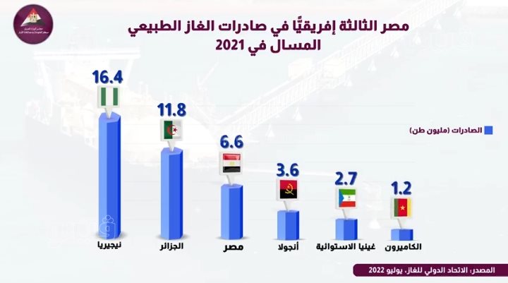 شهدت صادرات الغاز المسال المصري ارتفاعًا ملحوظًا في السنوات الأخيرة حيث وصلت إلى 6.6 ملايين طن في 2021، لتحتل بذلك المرتبة الثالثة على مستوى القارة الإفريقية.