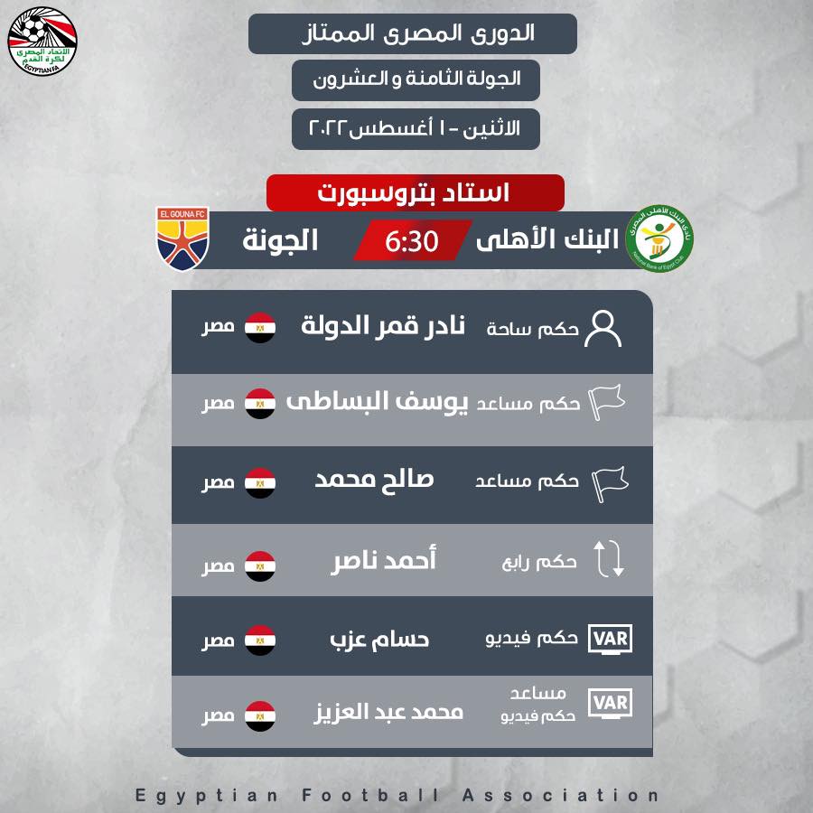 أعلنت لجنة الحكام الرئيسية باتحاد الكرة، أسماء حكام مباريات اليوم الإثنين، ضمن مواجهات الجولة 28 من الدوري الممتاز، وأبرزها مباراة الزمالك أمام بيراميدز، وجاءت على النحو التالي: