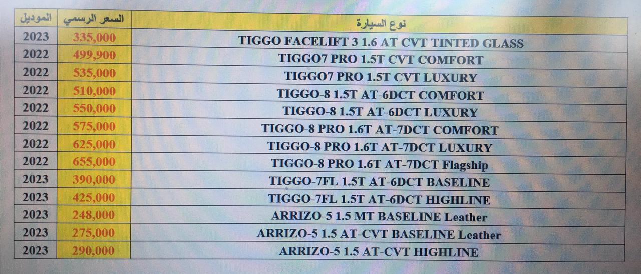 ويستعرض التقرير التالي أسعار سيارات شيري الجديدة بالسوق المحلي بدايةً من اليوم 1-8-2022 وهي كالتالي: