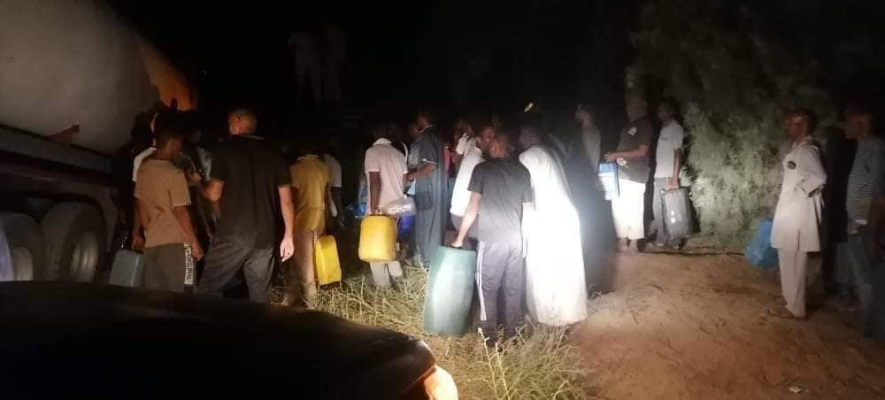 ونقلت صحيفة بوابة ”الوسط“ الليبية، عن مصدر محلي قوله إن الشاحنة انفجرت أثناء تدافع المواطنين في المنطقة لتعبئة جالونات منها.