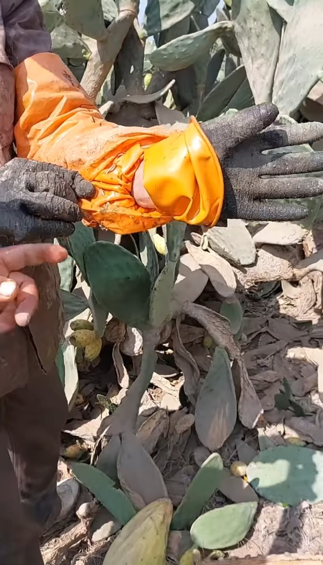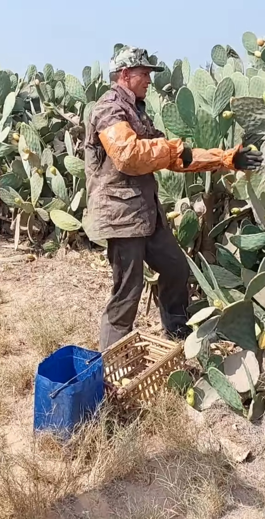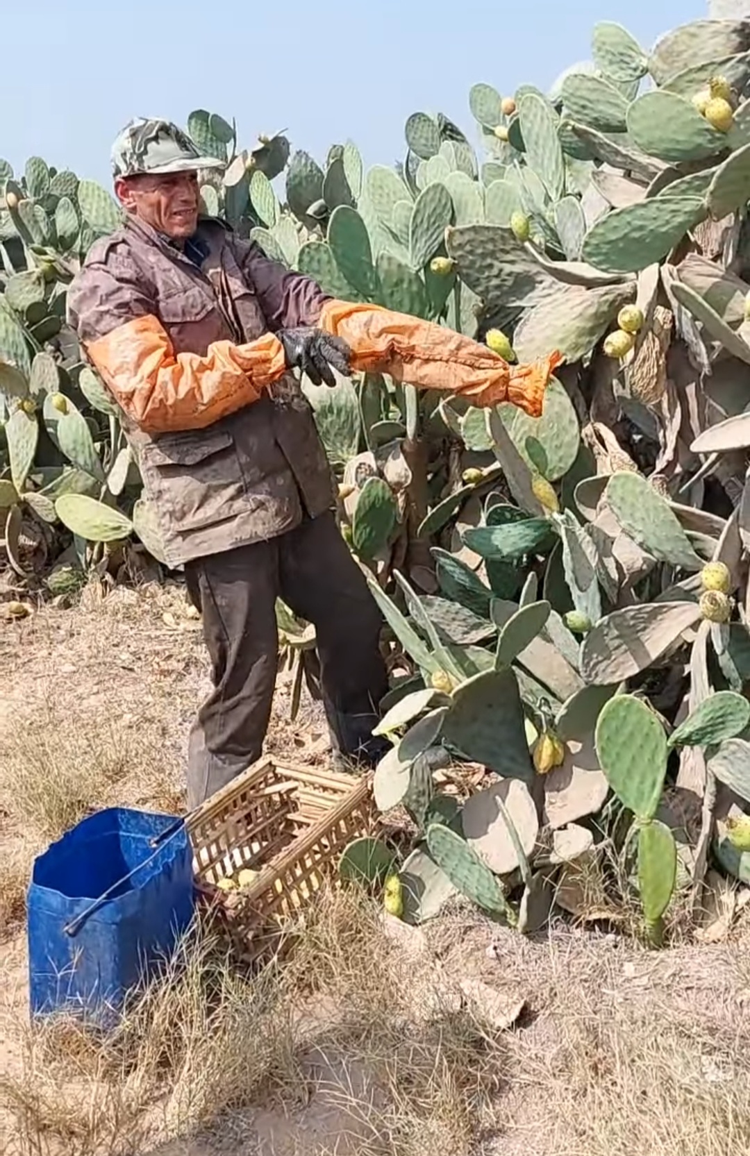 من كل مكان حاول ستر ما استطاع من جسده بالقماش والبلاستيك لامتصاص اكبر قدر من الأشواك التي ايضا تعانده وتخترق جسده وتصر على أن تؤلمه بكل مليم يأخذه نظير عمله في جمع التين الشوكي والذي يعد مصدر رزقه الوحيد للإنفاق على أسرته المكونة من ٤ بنات وولد وزوجته التي لم تقف مكتوفة الأيدي مع زوجها الذي يكابد للحصول علي لقمة عيش حلال مغموسة بالشوك.