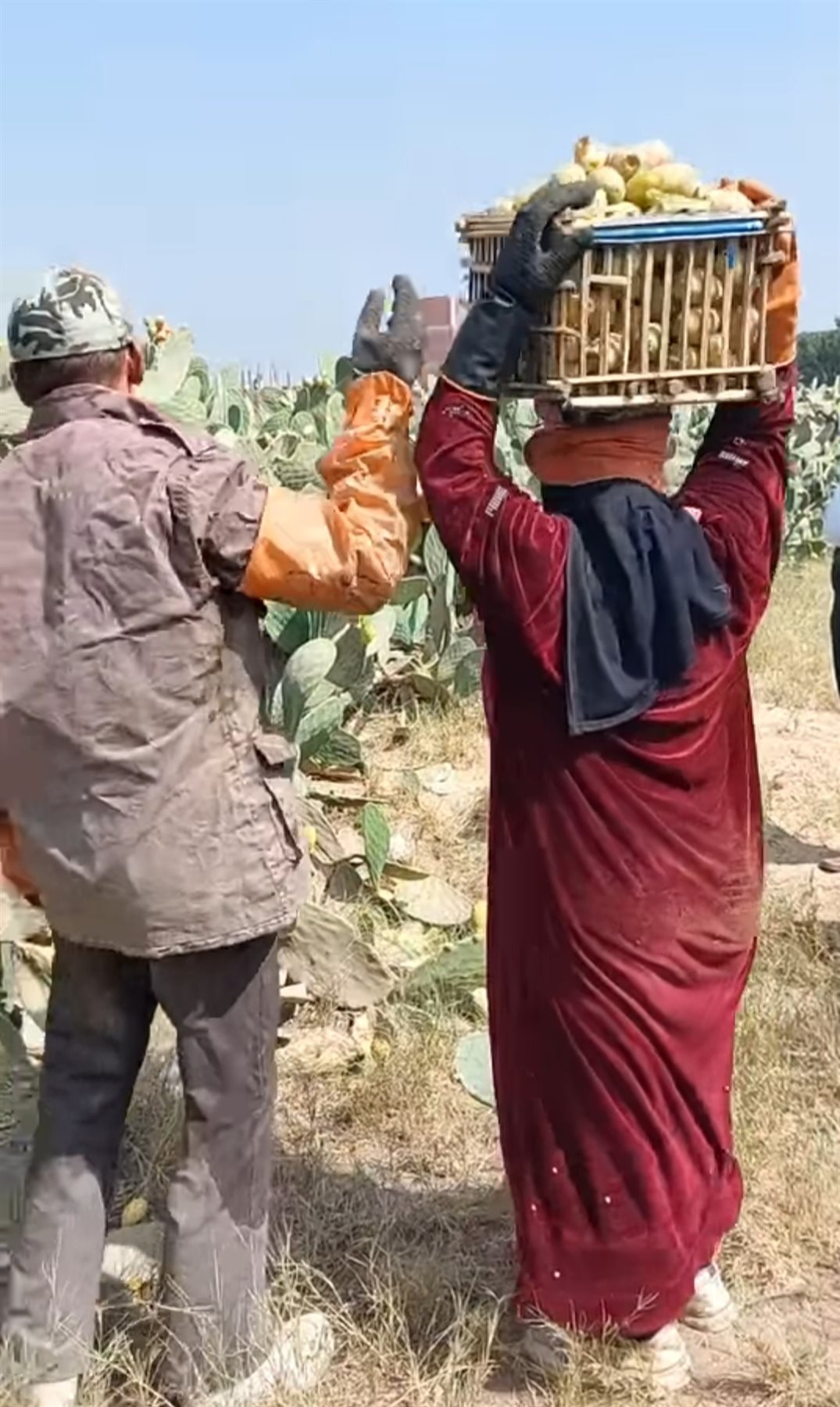 "لدي اعاقة في رجلي فاقف على رجل واحدة " هكذا شرح محمد عامل جمع التين ظروفه الصحية القاسية حيث أنه من ذوي الهمم ويعاني من اصابة في أحد ساقيه فيقف على رجل واحدة أثناء جمع التين منذ الرابعة فجرا ليكون الشوك ممزوجا بالندى الذي يجعله لينا وحتي التاسعة صباحا وبعدها يخرج مسرعا من حرارة الشمس التي تنزل علي الشوك فتزيده شراسة والما.