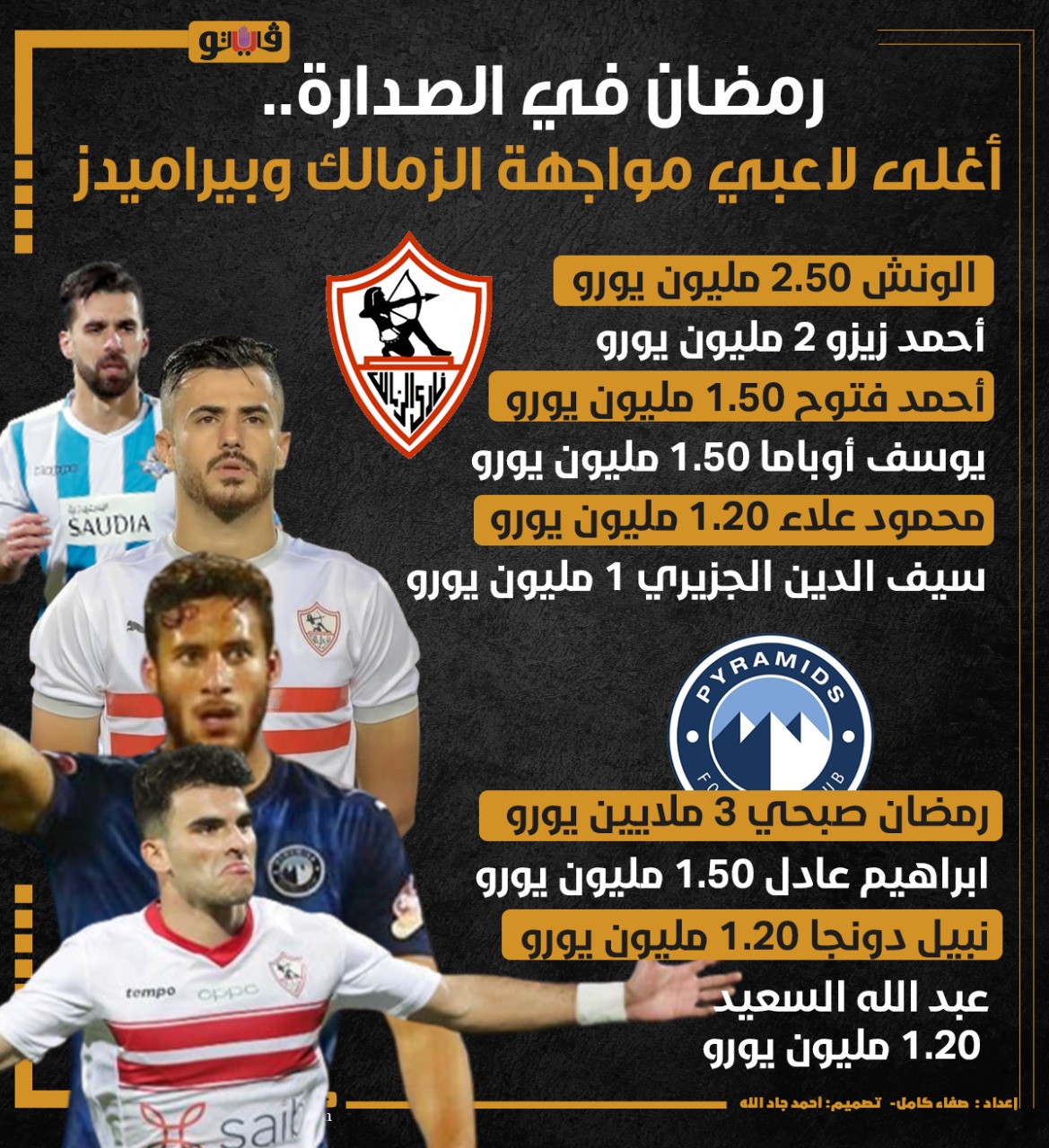 رمضان في الصدارة.. أغلى لاعبي مواجهة الزمالك وبيراميدز | إنفوجراف الإثنين 01/أغسطس/2022 - 07:03 م 8/1/2022 7:03:39 PM رمضان صبحي صفاء كامل شارك طباعة 18 حجم الخط شارك طباعة الزمالك بيراميدز الزمالك وبيراميدز الدورى المصرى الممتاز أغلى لاعبي الزمالك أغلى لاعبي بيراميدز