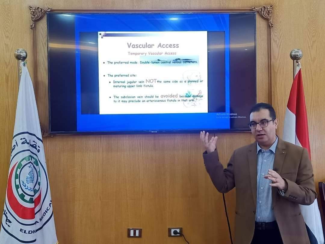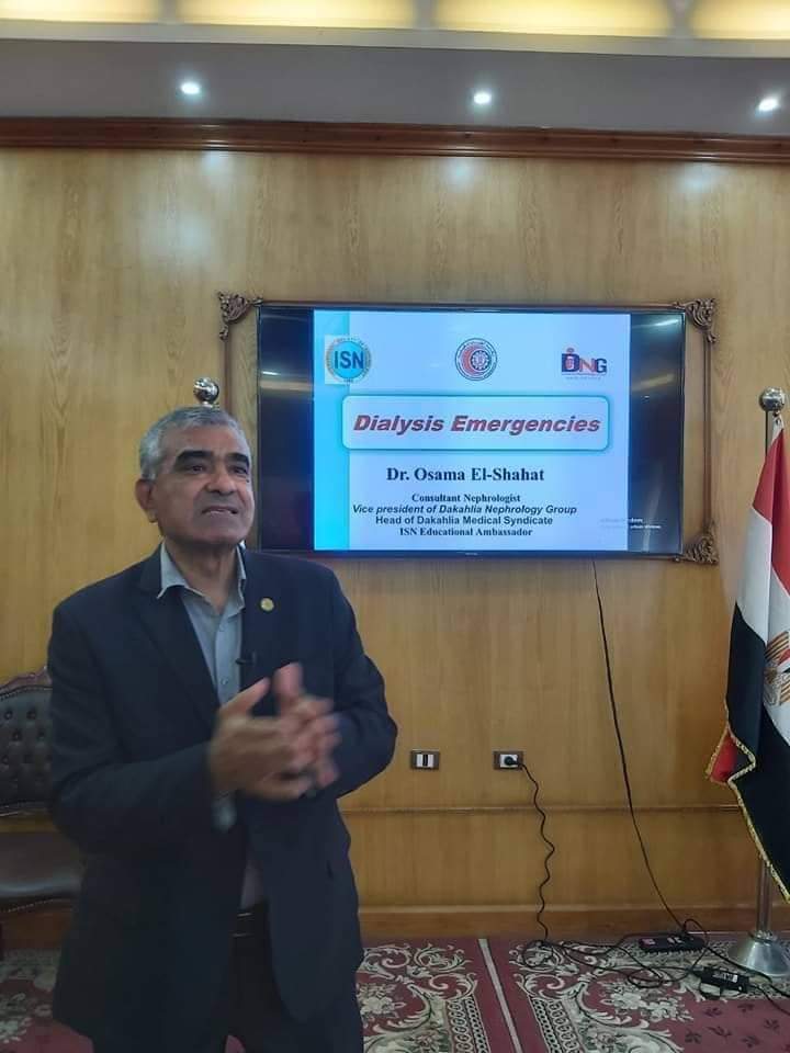 - والثانية عن غسيل الكلي الطوارئ والقاها الدكتور أسامة الشحات استشاري الكلى وسفير الجمعية العالمية لأمراض الكلى ونقيب أطباء الدقهلية.