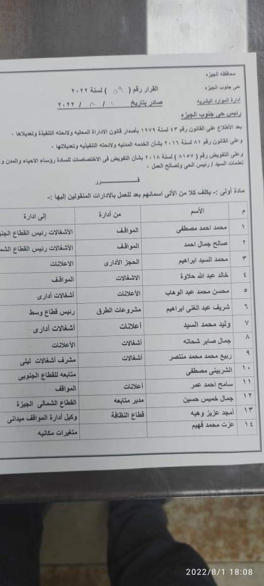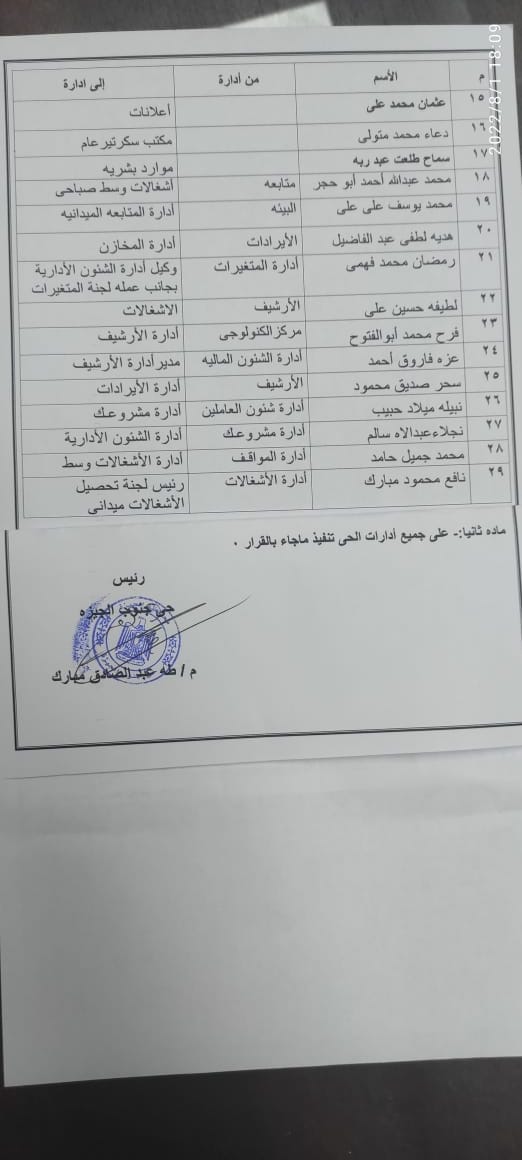 ننشر حركة تنقلات موظفي حي جنوب الجيزة | صور