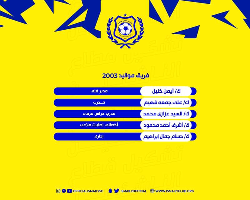 تشكيل قطاع الناشئين والبراعم بنادي الإسماعيلي 2022-2023