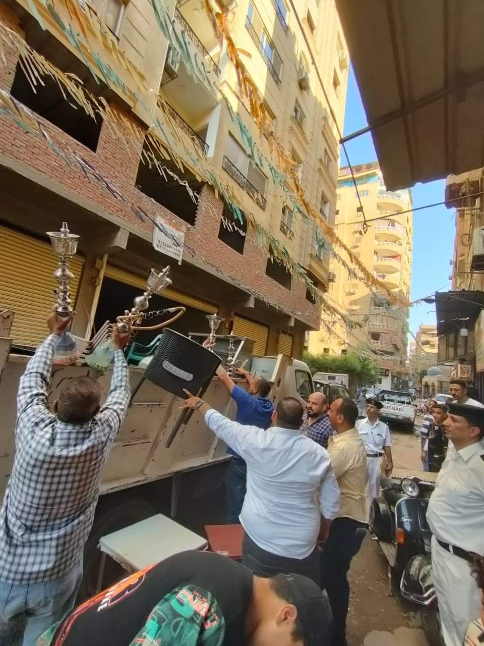 واستهدفت الحملة شوارع «العشرين- أبو زيد بدر- المساكن- ٦ أكتوبر- ناهيا وترعة المجنونة» وأسفرت عن رفع كافة الإشغالات من المحلات والمقاهي والكافيهات المخالفين بإجمالي «٣٠٠ كرسي متنوع، ٥٠ قلب وشيشة، كنبه جلد، جهاز وبلايستيشن، ١٠ ميزان متنوع، 5 مدرجات خشبية، ١٠ إستاندات حديدية، ٢ مرتبة، ٦ ترولات، مطبخ ٢ قطعة، ٢ قفص حديد، 5 ثلاجات، تروسيكل، ٨ توك توك، وتم إيداع المضبوطات بمخازن الحى لاتخاذ كافة الإجراءات القانونية تجاه المخالفين وتم تحرير ٤ محاضر غلق وتشميع.