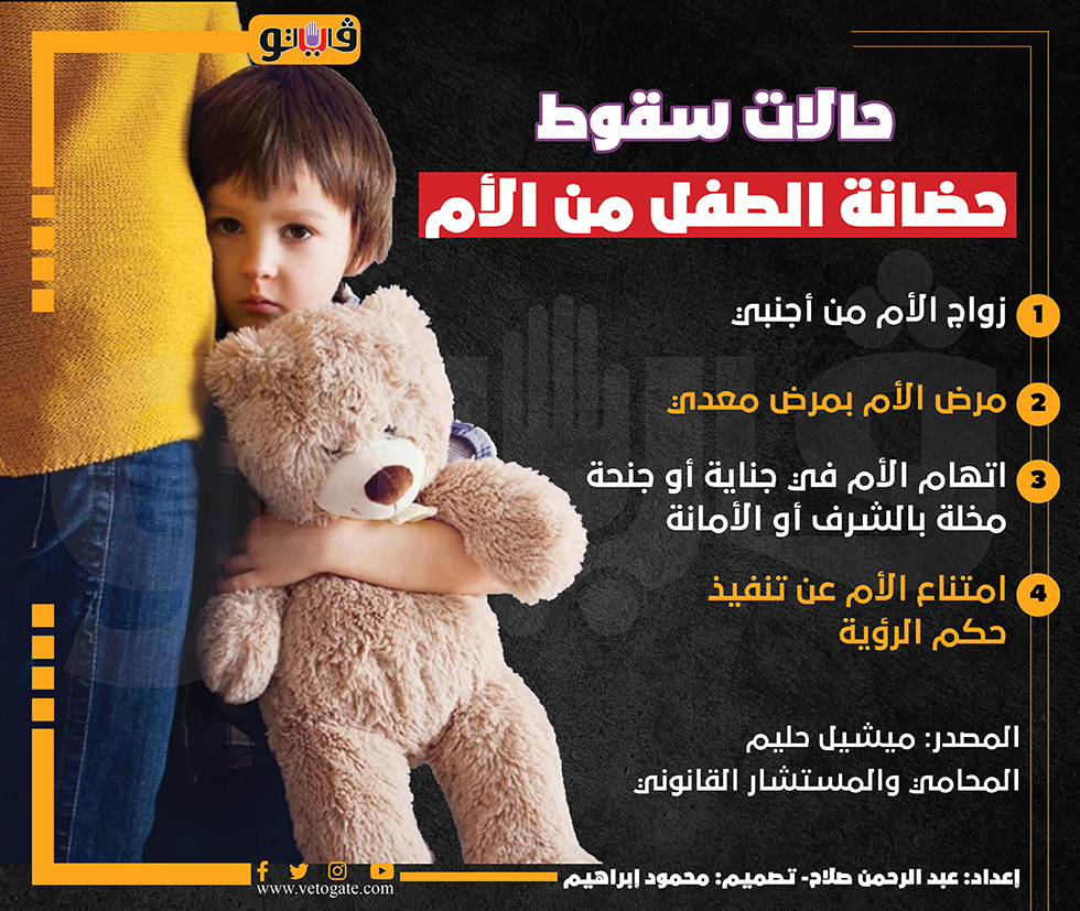 حالات سقوط حضانة الطفل من الأم | إنفوجراف الثلاثاء 02/أغسطس/2022 - 11:45 م 8/2/2022 11:45:08 PM حالات سقوط الحضانة من الأم عبدالرحمن صلاح شارك طباعة 18 حجم الخط شارك طباعة قانون الأسرة سقوط الحضانة من الأم حالات سقوط الحضانة اخبار المحاكم محكمة الأسرة