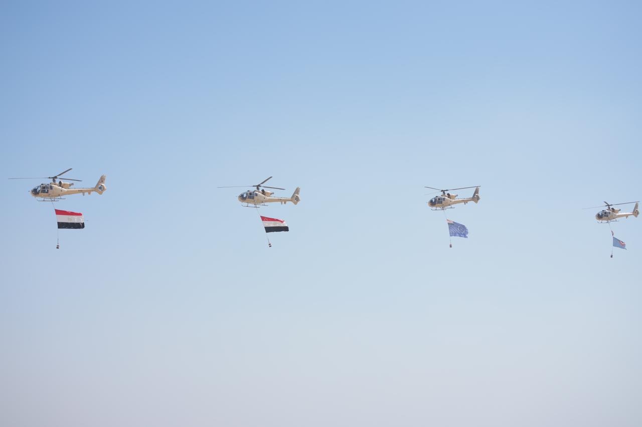 وحلقت الطائرات المشاركة، أثناء العرض، في سماء القاهرة الكبرى في عروض جوية مبهرة، حيث شارك في العرض فريق النسور السوداء من كوريا الجنوبية (Black Eagles) بعدد من الطائرات التي نفذت عددًا من العروض الجوية المتميزة بالتزامن مع تقديم فريق النجوم الفضية المصري (Silver Stars) وفريق طائرات الهيل جازيل المصري (حورس) عروضًا جوية مبهرة، وكذا تقديم عناصر من قوات المظلات المصرية عدد من العروض أثناء فعاليات المهرجان، كما شاركت الموسيقات العسكرية المصرية بعدد من المقطوعات والمعزوفات الوطنية المصحوبة بالحركات الإيقاعية المتميزة.