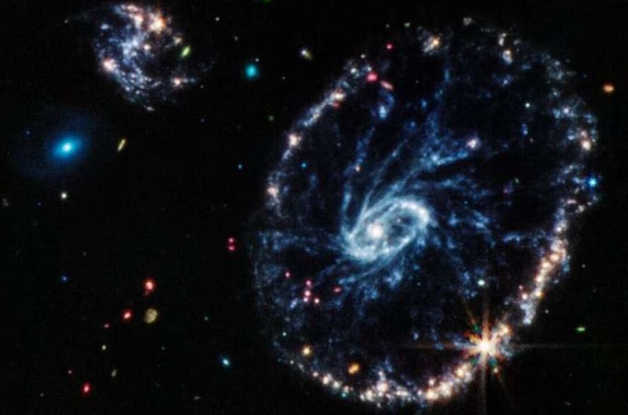 كشفت وكالة ناسا ووكالة الفضاء الأوروبية صور مذهلة من الفضاء العميق تضمنت مقاطع مصورة لمجرة "عجلة العربة" أظهرت بشكل واضح وغير مسبوق حلقة اللون الدوارة للمجرة.