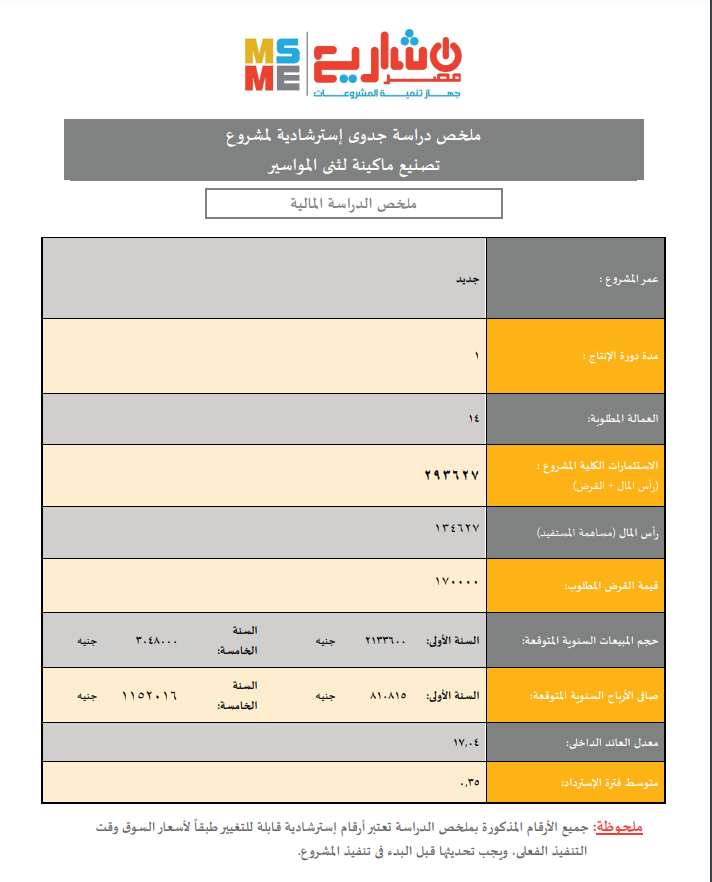 وأكد محمد عبد الملك، رئيس القطاع المركزي لفروع جهاز تنمية المشروعات المتوسطة والصغيرة ومتناهية الصغر، أن هناك 350 نموذج دراسة جدوى يتيحها جهاز تنمية المشروعات الصغيرة للشباب الراغبين في عمل مشروعات جديدة، لافتًا إلى أن النماذج استرشادية ومجانية ومتاحة لمَن يريد الاستفادة منها.