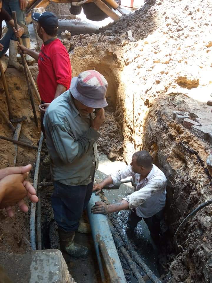 إصلاح خط الطرد بجزيرة الدهب جنوب الجيزة| صور