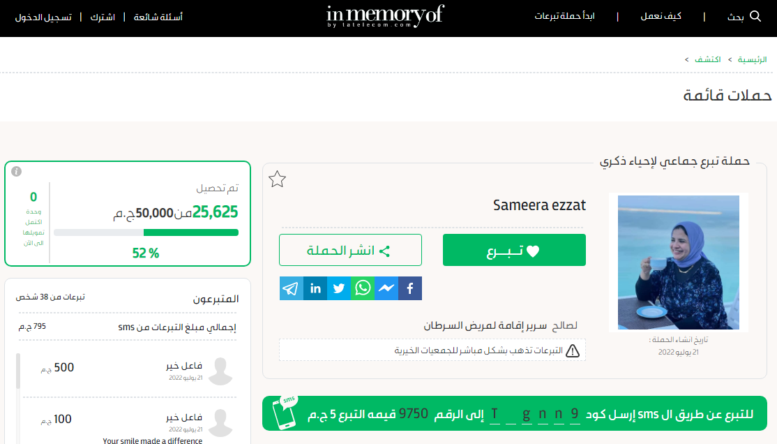 دشنت أسرة الطبيبة الراحلة سميرة عزت حملة لجمع التبرعات لإحياء ذكري الطبيبة لصالح سرير إقامة لمريض سرطان.