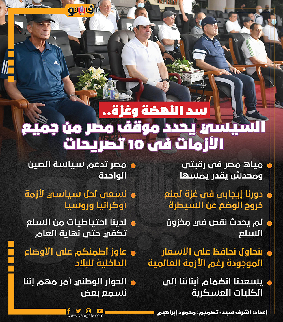 سد النهضة وغزة.. السيسي يحدد موقف مصر من جميع الأزمات فى 10 تصريحات| انفوجراف السبت 06/أغسطس/2022 - 08:22 م 8/6/2022 8:22:48 PM السيسي يحدد موقف مصر من جميع الأزمات فى 10 تصريحات أشرف سيد شارك طباعة 18 حجم الخط شارك طباعة السيسي مصر الصين أكرانيا غزة