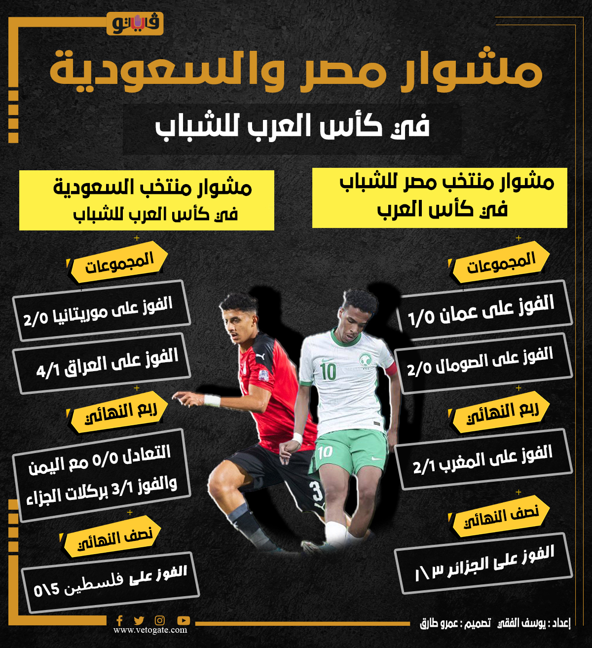 مشوار مصر والسعودية في كأس العرب للشباب | إنفوجراف الأحد 07/أغسطس/2022 - 09:00 ص 8/7/2022 9:00:26 AM مشوار مصر والسعودية في كأس العرب للشباب يوسف الفقي شارك طباعة 18 حجم الخط شارك طباعة منتخب الشباب منتخب مصر للشباب منتخب مصر بطولة كاس العرب للشباب نهائي كاس العرب مشوار منتخب الشباب