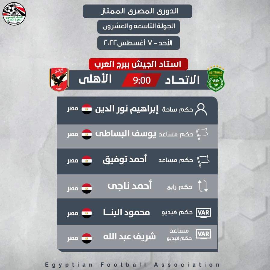 حكام مباراة الأهلي والاتحاد