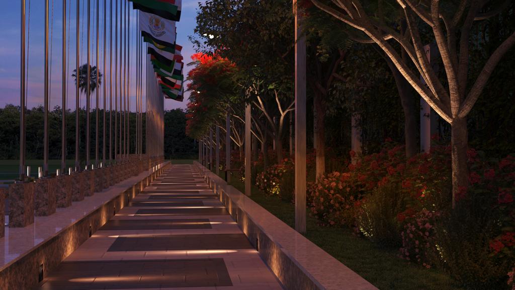 ويضم المشروع ممشى رئيسى وسارى أعلام لكل دولة من الدول التى لها طلاب وافدين يدرسون بمختلف الكليات بجامعة المنصورة ، وكذلك المسرح المفتوح لتنظيم وإقامة مختلف العروض والفعاليات .