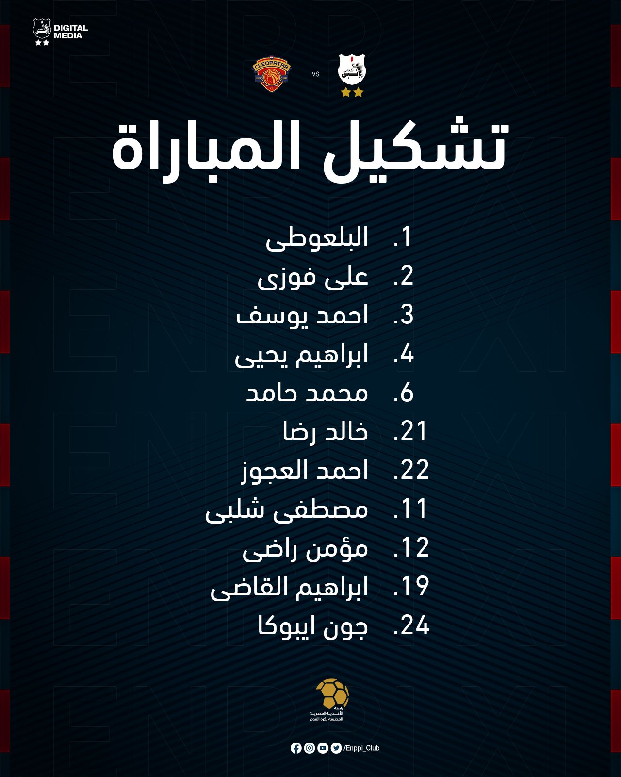 يجلس على مقاعد البدلاء: محمود شكري - علاء عطا - خالد صبحي - صالح جمعه - محمد إبراهيم - عبد الرحمن بودي- حمزة مجدي - ايفانز منساه - كوامي بونسو.